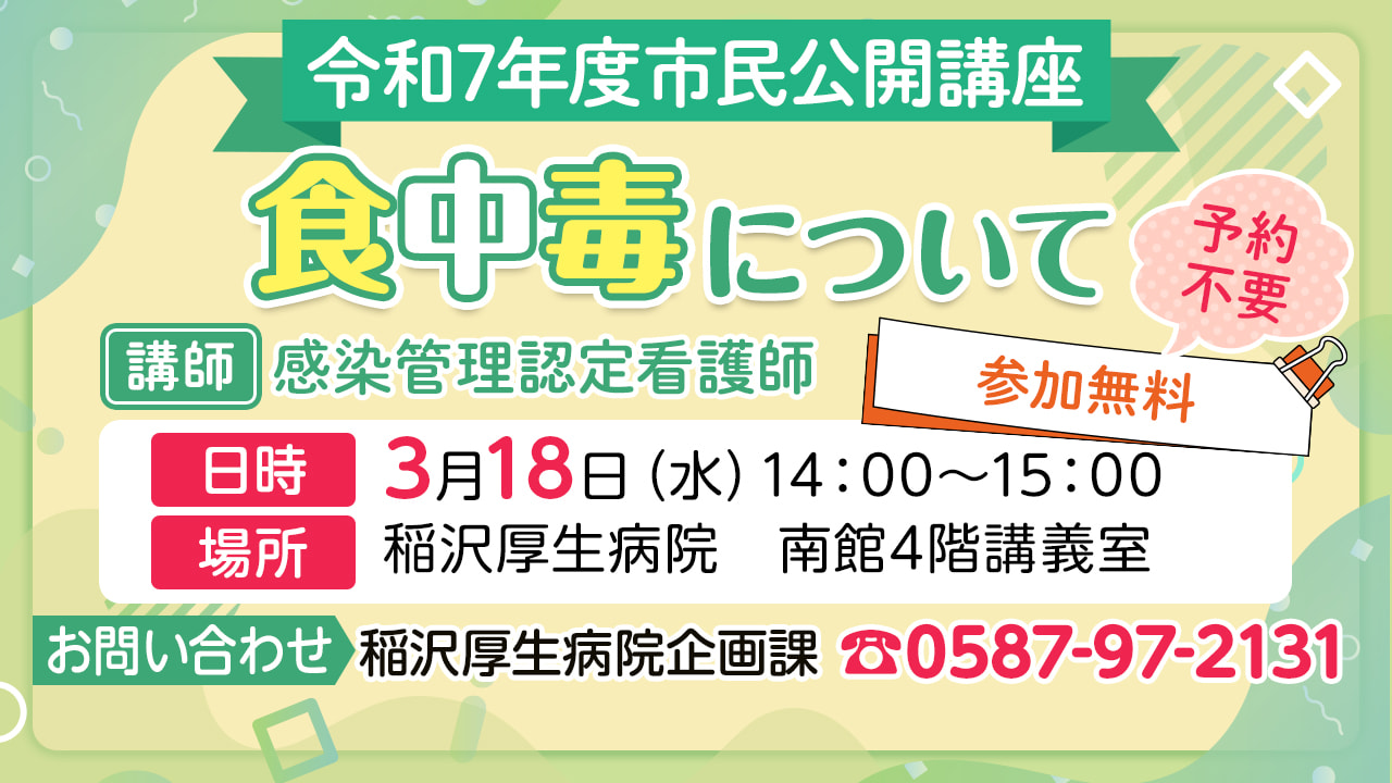 | お問い合わせ | 稲沢厚生病院 企画課 TEL:0587-97-2131 |