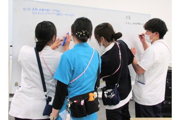 研修では、グループでインシデントアクシデント報告の事例について、リスクの発生要因を分析し、自分たちの看護を振り返りました。
